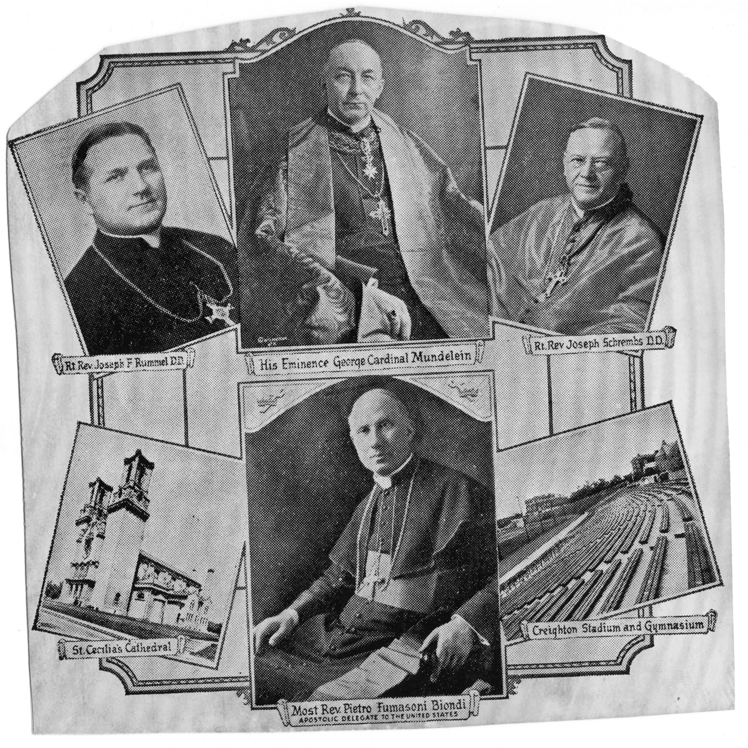 In 1930, the sixth National Eucharistic Congress was held in Omaha from Sept. 23-25. The event attracted Catholics from across the country and abroad. Among the dignitaries attending the conference were Cardinal George Mundelein of Chicago, Bishop Joseph Schrembs of Cleveland and Bishop Pietro Fumasoni-Biondi, apostolic delegate to the United States.